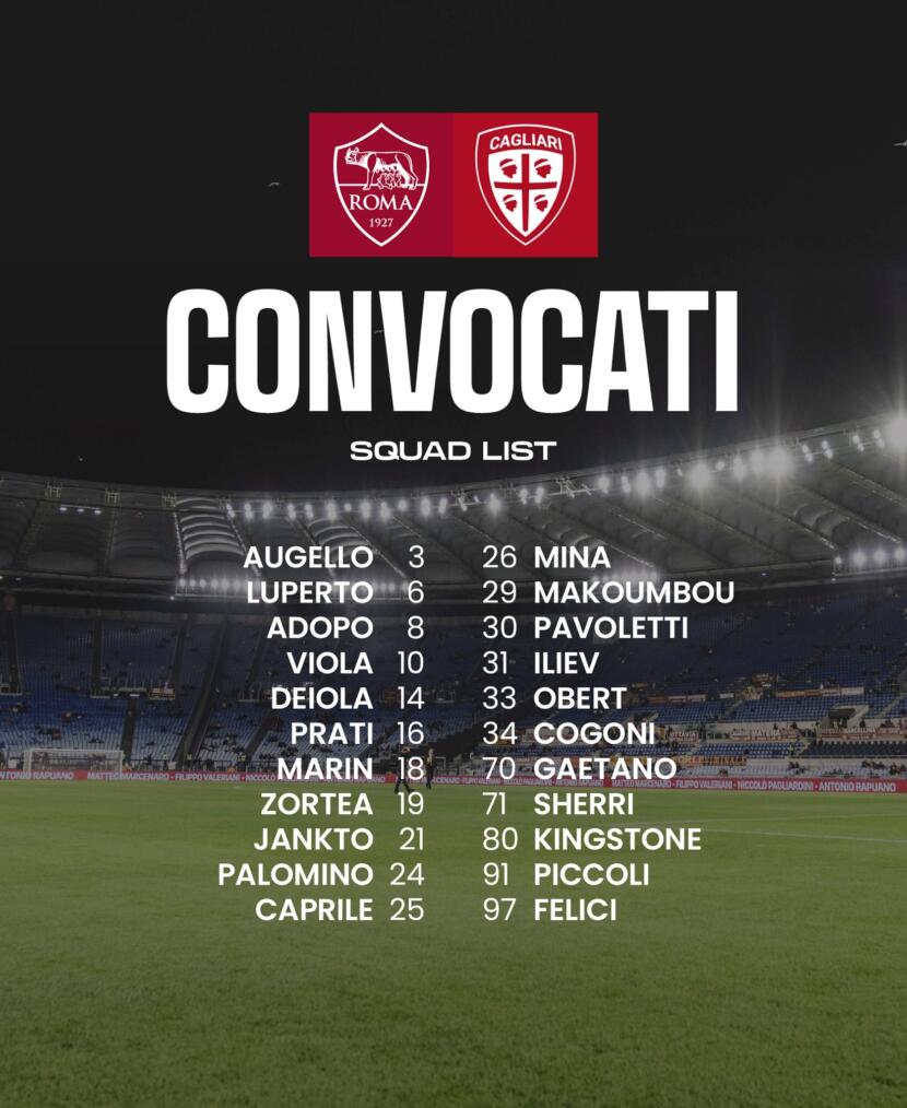 Nella lista dei convocati di Davide Nicola non figurano i nomi di Zito Luvumbo, Gabriele Zappa e Florinel Coman, con tutti e tre che, approfittando della sosta nazionali, potrebbero essere recuperati per l’importante partita con il Monza di domenica 30 marzo. L’angolano è ancora out dalla partita di Bologna, in cui ha subito una distrazione di basso grado al bicipite femorale della coscia destra: più “freschi” i guai di Florinel Coman (infiammazione del tendine d’Achille contro il Genoa che gli impedirà di far parte anche della Romania nelle prossime gare della nazionale) e Gabriele Zappa, che si è fermato in settimana a causa di una distrazione muscolare. Out anche Ciocci, motivo per cui per la gara dell’Olimpico sarà convocato il portiere della Primavera Zari Iliev (fresco di contratto da professionista) e anche il difensore Andrea Cogoni. Per quanto riguarda la Roma sarà assente il solo terzino turco Celik. Di seguito la lista dei convocati nella grafica del club rossoblù.