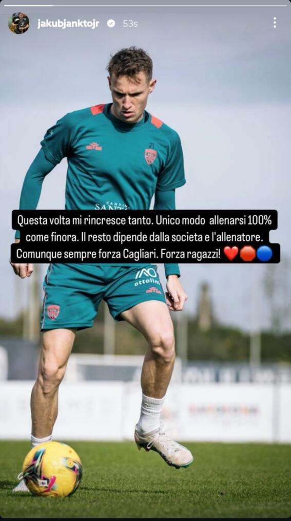 Così il classe ’96 di Praga sul suo profilo Instagram, per quella che non sarebbe una novità nelle ultime settimane. Jankto, infatti, aveva era già stato escluso dall’elenco dei convocati per l’ultima partita di Monza – ufficialmente causa febbre – e ancora prima per quella di Coppa Italia contro la Juventus, mentre era presente nella lista sia nella gara casalinga contro l’Inter che nella trasferta di Venezia pur senza scendere mai in campo. Il Cagliari cerca una soluzione sul mercato, opzione complessa per via del decreto crescita e relativa detassazione, con il club rossoblù che in caso di cessione all’estero dovrebbe restituire il 50% delle tasse fin qui risparmiate, una cifra intorno ai 300mila euro. Con il centrocampista ceco che, dunque, sembra destinato a restare in Sardegna fino alla scadenza del contratto prevista per il prossimo giugno, dopo l’accordo firmato nel 2023 per due anni a 500mila euro netti a stagione.