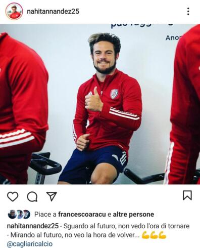 “Sguardo al futuro, non vedo l’ora di tornare”, le parole postate intanto da Nandez sul suo profilo Instagram insieme ad una foto che lo ritrae mentre sorride.