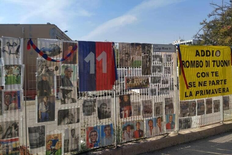 “Addio Rombo di Tuono, con te se ne parte la Primavera”, recitava un solitario cartello giallo in via Dante a Cagliari, fronte Cimitero di Bonaria, lì dove riposa Gigi Riva. Dopo poco tempo quel cartello non è rimasto più l’unico modo di onorare il mito rossoblù, anzi. Perché le ringhiere nell’ultimo tratto di via Dante si sono riempite di foto del campione in campo e nella vita di tutti giorni, un gesto di tifosi e appassionati che hanno così deciso di dedicare a loro modo la via a Riva.
