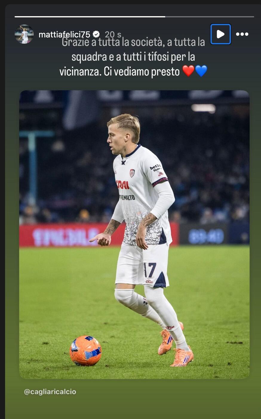 È arrivata anche l’ufficialità da parte del Cagliari: tramite una nota sul proprio sito ufficiale, la società rossoblù ha annunciato che Mattia Felici ha riportato la rottura del legamento crociato del ginocchio sinistro, con il giocatore che si è già sottoposto a un’operazione, perfettamente riuscita.