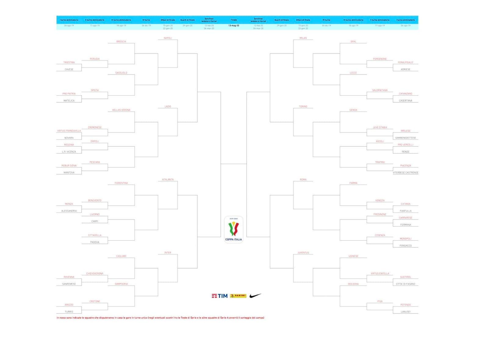 È stato sorteggiato il tabellone della Coppa Italia 2019/2020.Â