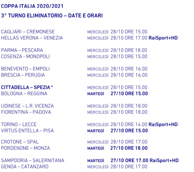 Sarà Cagliari-Cremonese una delle partite che aprirà il mercoledì riservato al terzo turno eliminatorio della Coppa Italia 2020/2021.Â