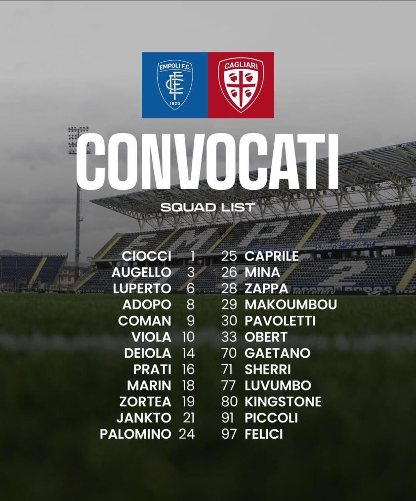Rispetto alla partita contro il Monza di domenica scorsa, rientra tra i convocati Adam Obert: il difensore slovacco ha recuperato dopo il riacutizzarsi del problema muscolare avvenuto con la sua nazionale nella finestra di marzo. Di seguito la lista completa dei convocati nella grafica del club rossoblù.