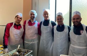 Lodevole iniziativa di alcuni calciatori e componenti dello staff del Cagliari che hanno raccolto l’invito della Caritas diocesana per dare una mano alla Mensa di viale Sant’Ignazio.