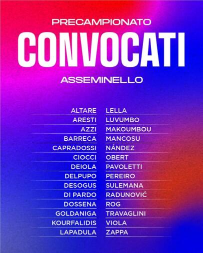 14.56 – Sono 28 gli uomini chiamati dal tecnico di Testaccio in vista del ritiro estivo. Non solo i tanti giovani presenti come Desogus, Delpupo o Kourfalidis, ma anche i più esperti come Viola, Rog, o Goldaniga dovranno dimostrare in questi mesi di preparazione di meritarsi un posto nella rosa che disputerà la prossima Serie A. Occhi puntati in particolare sul primo acquisto della dirigenza rossoblù Sulemana (qui per il nostro approfondimento sul calciatore). Di seguito l’elenco dei convocati ad Asseminello.