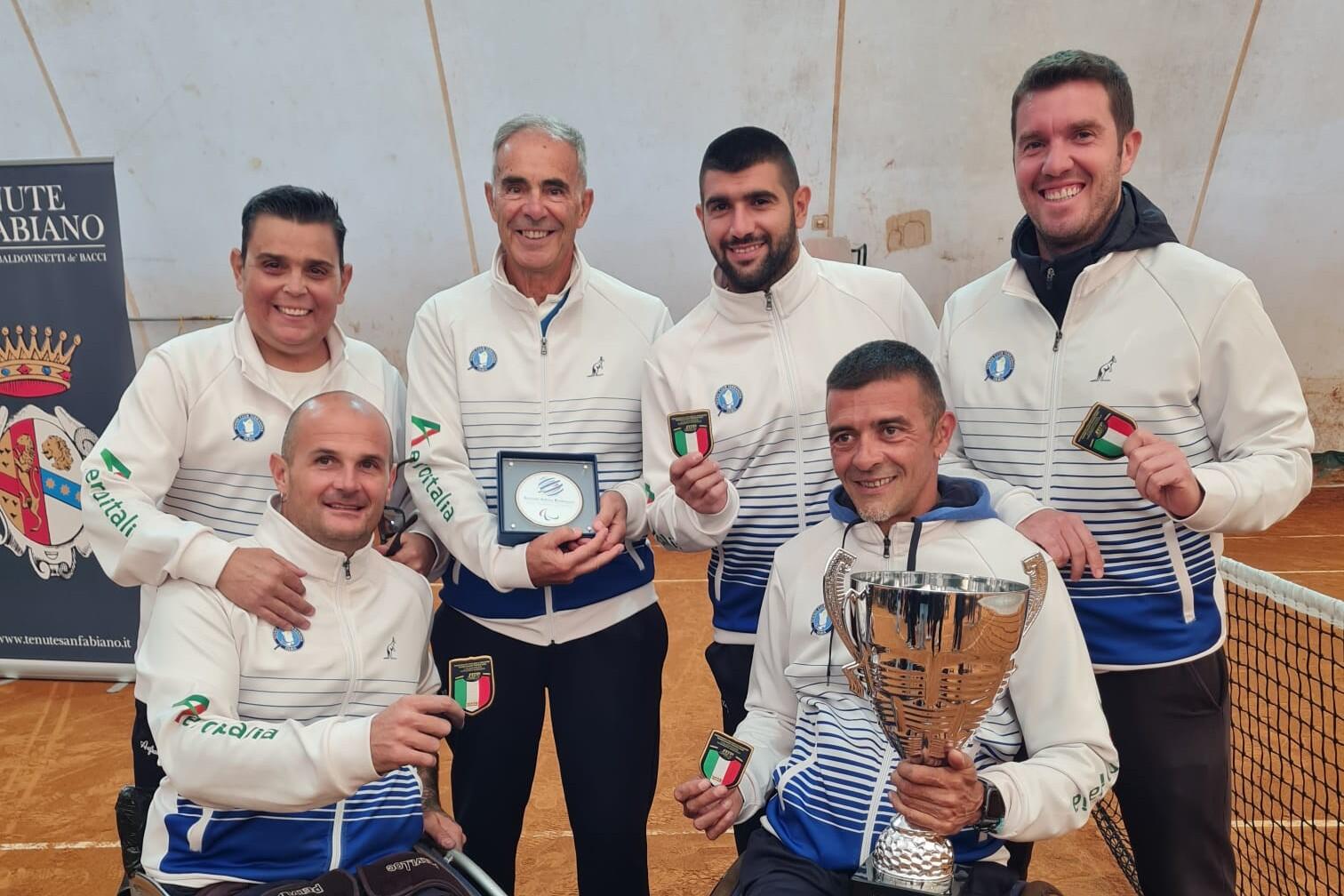 Il TC Terranova di Olbia si conferma campione italiano di tennis in carrozzina. La grande squadra composta da Luca Arca, Mario Cabras e Marco Pincella, accompagnati dal maestro Gioele Tedde e dai dirigenti Valentino Coizza e Gianfranco Asole, si è confermata ai vertici del tennis italiano dopo il trionfo di Bra dell’anno scorso. La squadra sarda composta dal campione paraolimpico Luca Arca, Mario Cabras e Marco Pincella ha avuto la meglio sul Tennis Giotto di Arezzo, al termine di una finale combattuta ed equilibrata. Il Tc Terranova centra così il bis ad Arezzo.