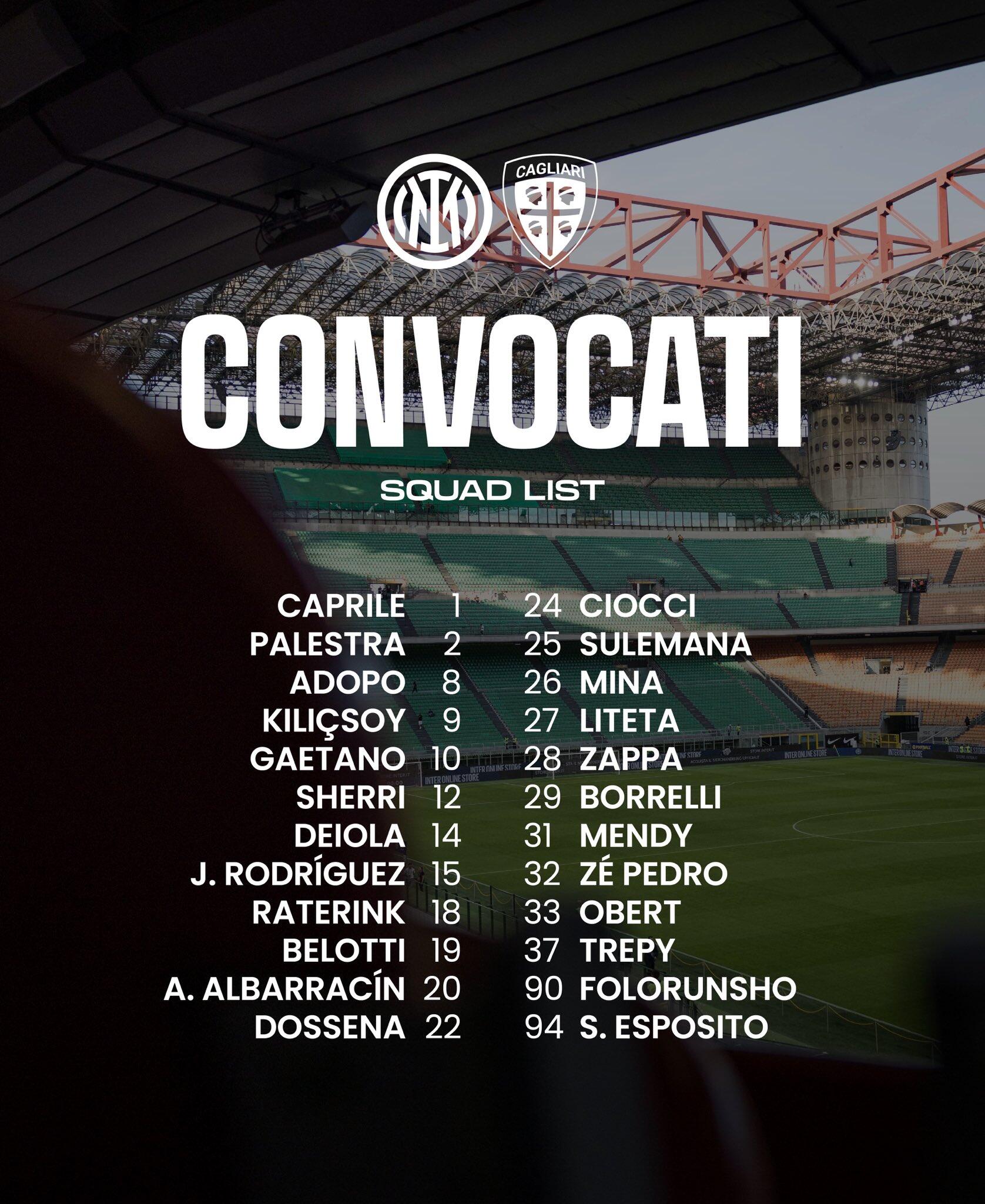 Sono ventiquattro i convocati di Fabio Pisacane per la partita del Cagliari contro l’Inter, in programma domani, venerdì 17 aprile, a San Siro alle 20.45 e valida per il 33° turno di Serie A.