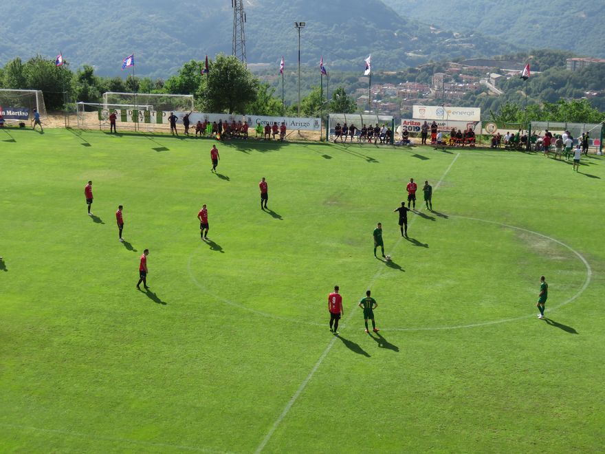17.30 – Entrano in campo i ragazzi della Rappresentativa Barbagia, che indossano il completo verde con numeri gialli dell’Aritzo, mentre il Cagliari veste la classica divisa da amichevole estiva (rossa con numeri bianchi, con pantaloncini blu).