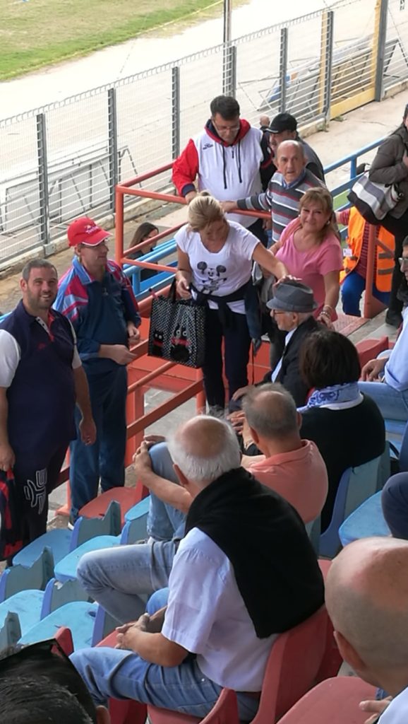 14:55 – Anche Gavino Soro in tribuna, ha scritto Carraioru di Ruseddu e uno degli inni della Torres