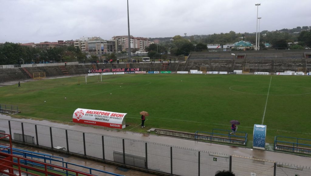 13′ – Ricomincia a piovere sul Vanni Sanna, con la pioggia che favorisce le azioni in contropiede degli ospiti come quella di Cadau, sul cui cross al centro non arriva in tempo l’ex Meloni.