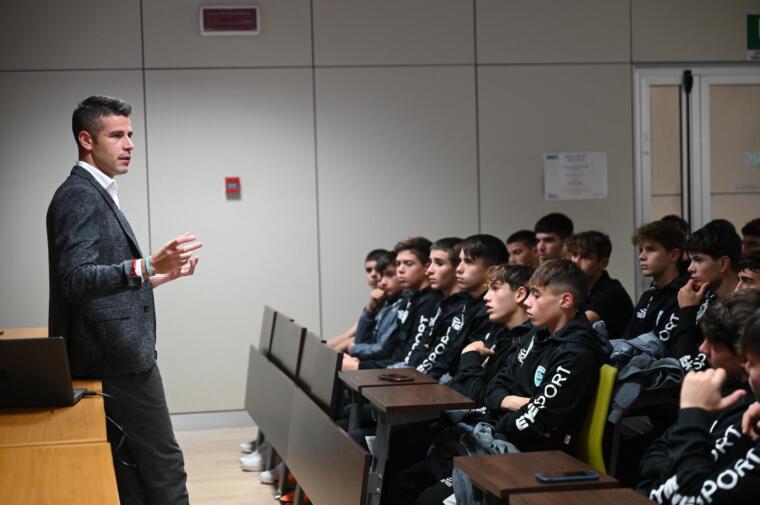 Nel pomeriggio di lunedì 21 novembre, le squadre Primavera, Under 17, Under 15, Under 14 e Femminile si sono quindi ritrovate presso la Sala Lodovici dell’aeroporto per partecipare al primo incontro in programma. Relatore di giornata, l’arbitro di Serie A e vicepresidente della sezione olbiese Antonio Giua. Il direttore di gara ha incentrato il proprio intervento sull’importanza della comunicazione che deve intercorrere tra arbitro e giocatori, ricordando gli aspetti principali che devono indirizzare e che possono ostacolare una sana e corretta dialettica in campo, portando a esempio alcune situazioni di gara.