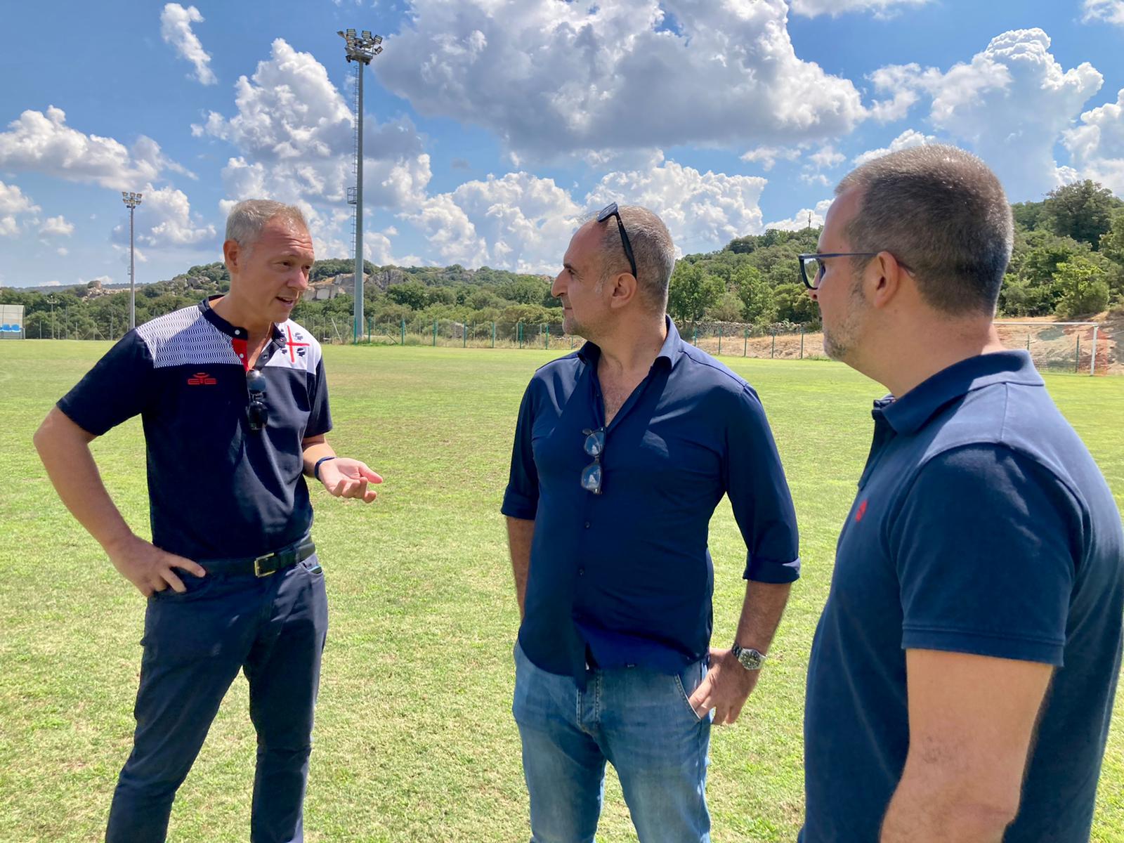 Il dirigente della Lega che sovrintende alla Serie C ha fatto visita al club gallurese nel ritiro di Buddusò in vista della nuova stagione.