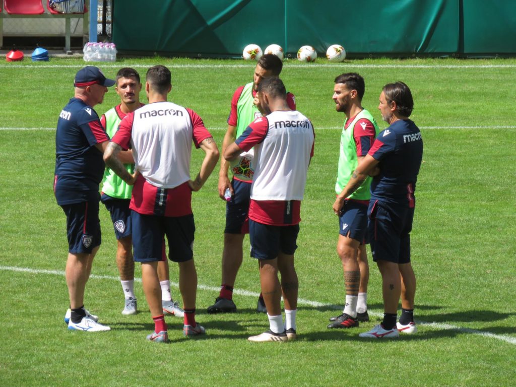 Allenamento mattutino per gli uomini di Maran sotto il sole della Val di Pejo. Dopo il riscaldamento iniziale (torello e parte atletica) gli uomini di Maran si sono divisi in due gruppi per provare alcune situazioni di gioco. Da una parte i bianchi con Cacciatore, Klavan, Ceppitelli, Pajac, Bradaric, Oliva, Caligara, Joao Pedro, Cerri e Despodov (con Ragatzu e Mattiello come cambi, anche se il terzino toscano ha svolto allenamento differenziato insieme al “Pata” Castro); dall’altra squadra i verdi (Pinna, Pisacane, Walukiewicz, Lykogiannis; Cigarini, Ionita, Biancu; Birsa; Pavoletti e Han): entrambe le formazioni hanno provato schemi piazzati su calci d’angolo, situazioni offensive e dinamiche di gioco volte alla finalizzazione dell’azione.