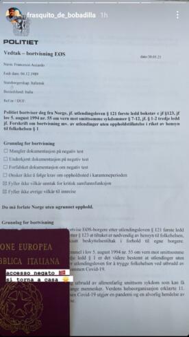 “Ufficiale. Permesso negato. Non posso entrare in Norvegia. E sarà così per tutti almeno fino ai primi di luglio. Non c’è ambasciata che tenga, motivazioni lavorative, documenti e documentari, fogli di carta e test COVID negativi che possano fare niente. Qui non si entra”, sono queste le parole del cagliaritano.