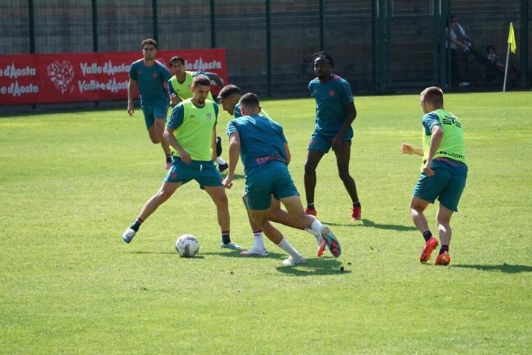 Settimo giorno di lavoro nel ritiro in Valle d’Aosta per il Cagliari di Davide Nicola, che davanti a oltre 100 tifosi ha svolto la seduta mattutina sotto il caldo sole di Chatillon.