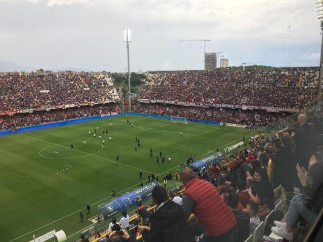 17:15 –ย Entrano sul terreno di gioco i portieri rossoblรน che si scalderanno sotto la curva occupata dai tanti tifosi cagliaritani occorsi all’Arechi.