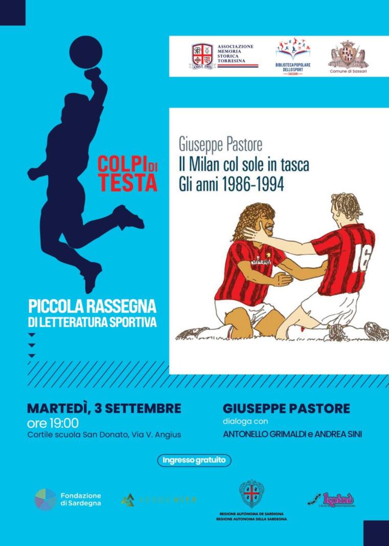 Riparte alla grande la serie di eventi della Biblioteca Popolare dello Sport di Sassari, infatti, domani 3 settembre alle ore 19.00 sarà di scena il primo appuntamento della rassegna “Colpi di testa” che vedrà come ospite Giuseppe Pastore, giornalista de La Gazzetta dello Sport.