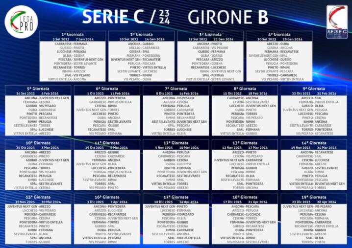 Dopo aver conosciuto quali saranno le avversarie di Torres e Olbia nel girone B della Serie C 2023/24 (qui per l’approfondimento), nella giornata di oggi 7 agosto la Lega Pro, attraverso i propri canali ufficiali, ha reso noto anche quello che sarà il calendario della prossima stagione. Di seguito il percorso che dovranno affrontare i bianchi e i rossoblù.