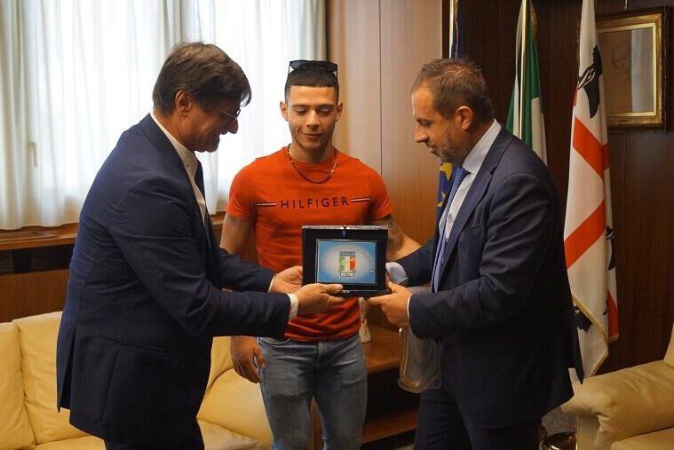Il 21enne atleta del CS Esercito, originario di Ghilarza, in provincia di Oristano, per l’occasione è stato accompagnato dai suoi genitori e da Nicola Testa, Presidente del Comitato Regionale Sardegna. Sergio Massidda, tra i dieci atleti del Team Italia FIPE, è attualmente 2° nella ranking list per i Giochi Olimpici di Parigi 2024. “Ho avuto l’onore e il piacere di incontrare il vicecampione del mondo di pesi Sergio Massidda – ha scritto Pais sul suo profilo Facebook – Spessissimo negli ultimi anni la Sardegna è salita sui podi più importanti del mondo. La volontà , la determinazione, la grande preparazione fisica e mentale dei nostri atleti fa superare ogni difficoltà . Lo sport è sacrificio, maggiore per gli atleti sardi. Ad maiora Sergio! Viva lo sport, viva la Sardegna, viva l’Italia!!!”.