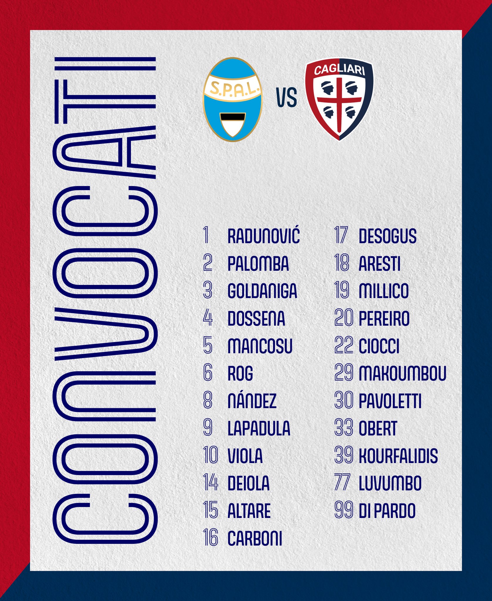 Il mister rossoblù dovrà fare a meno di Sebastian Walukiewicz, ancora out per un problema fisico, di Gabriele Zappa e di Nunzio Lella: questi ultimi due sono stati colpiti nelle scorse ore da una forte gastroenterite che li costringerà a rimanere in Sardegna. Out anche Isaias Delpupo e l’ultimo arrivato Antonio Barreca che ha svolto il primo allenamento solo in mattinata. La carenza di difensori centrali, nonostante la prima convocazione di Dossena (che ha scelto la numero 4), ha quindi costretto Liverani a chiamare dalla Primavera il giovane Palomba.