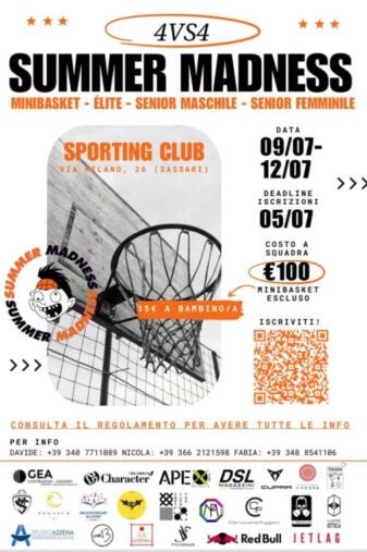 Gli organizzatori raccontano il loro progetto: “L’ispirazione si è detto arriva da Bologna, la basket city per eccellenza, e giunge sino a Sassari, che è stata ed è ancora Capitale cestistica di un’Isola salita alla ribalta della pallacanestro nazionale e internazionale. Un’idea che parte da lontano e guarda lontano, che supera le porte della “dotta” e il mare Tirreno per atterrare fragorosamente – quasi come gli alieni di Space Jam – in una città che la fame di pallacanestro l’ha soddisfatta ma non l’ha mai placata. Un evento aperto a tutti, opportunità di aggregazione foriera di spunti e di visibilità, momento di aggregazione a partire dall’evento di presentazione in cui sponsor, organizzatori, atleti e città si incontrano e incrociano interessi esigenze e punti in comune. Questo è solo il primo passo, dare continuità è l’obiettivo. Grazie a chi ci ha sostenuto e a chi si è già iscritto”. Regolamento e dettagli sono disponibili sui canali social ufficiali Summer Madness. Scadenza iscrizioni oggi – 05 luglio 2024 – alla mezzanotte.