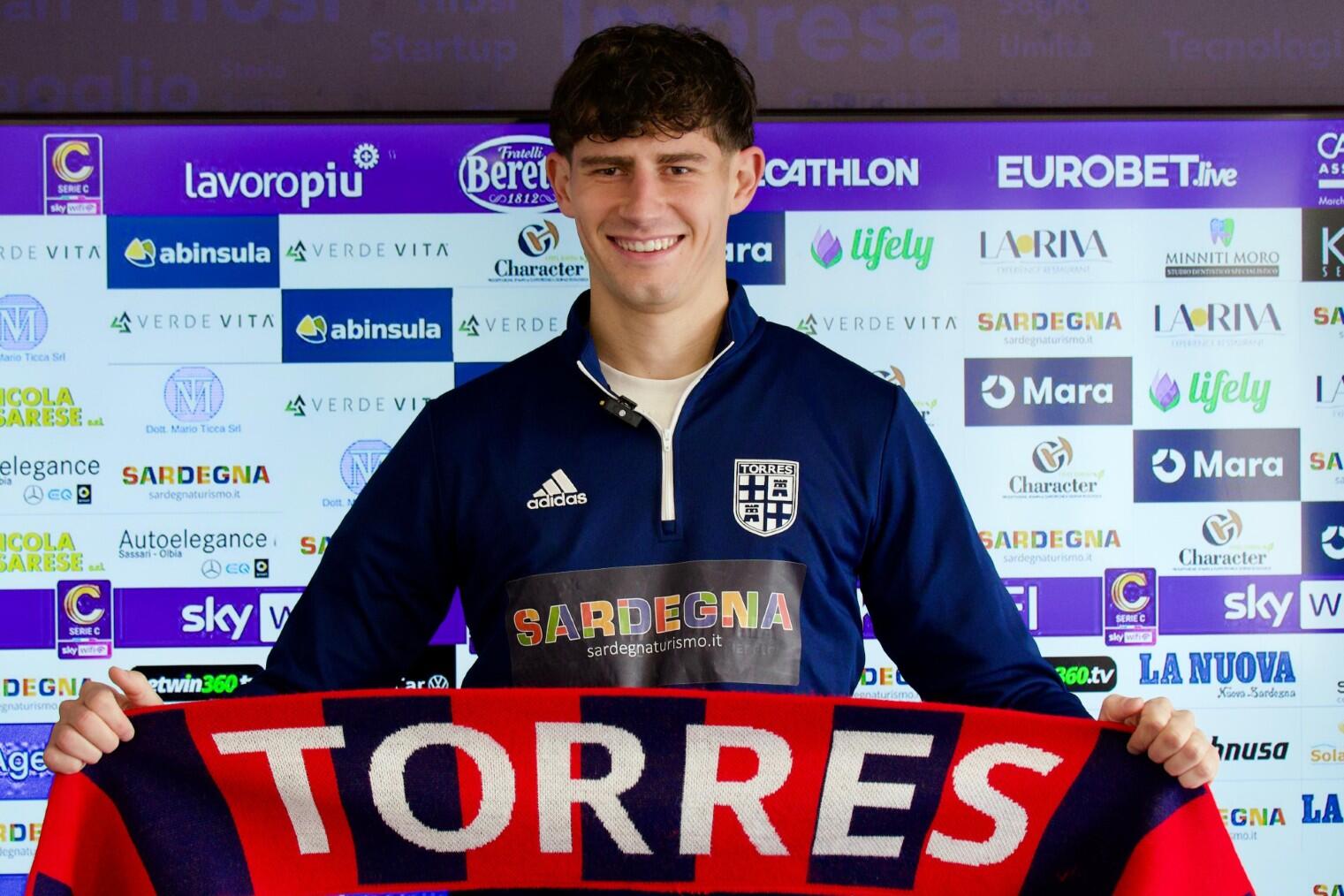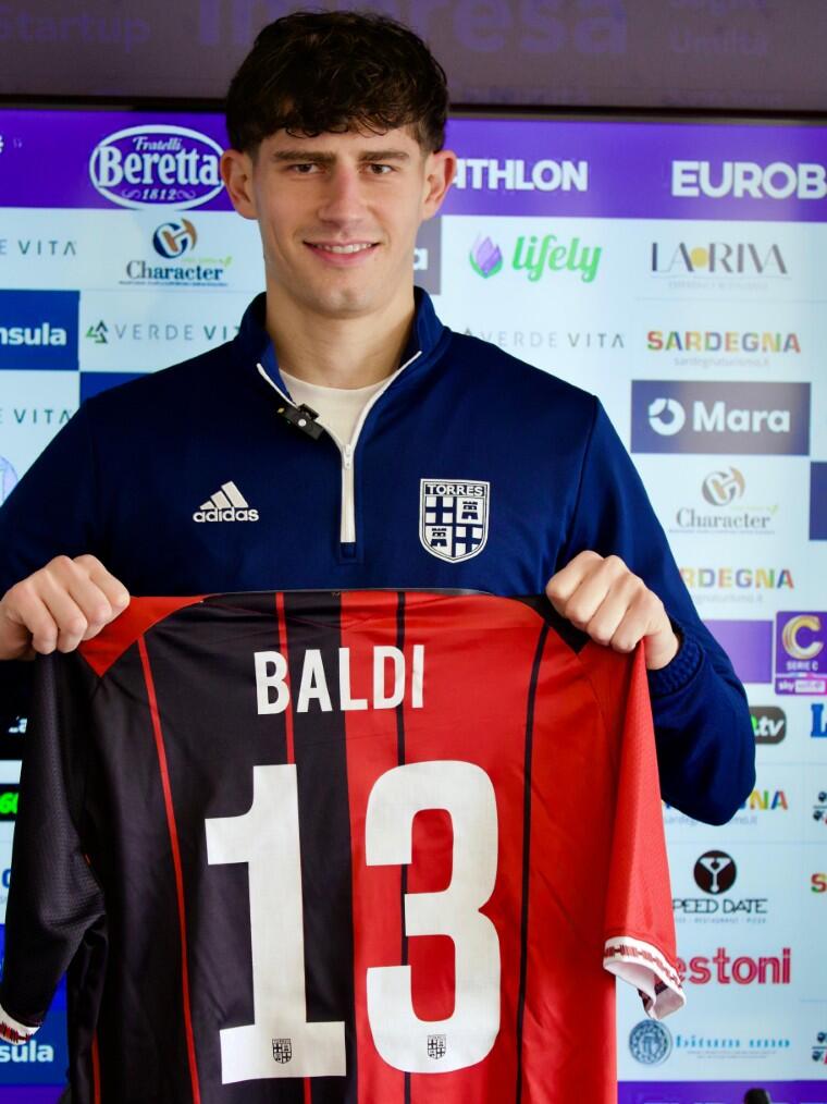 Le prime parole da difensore della Torres per Matteo Baldi, arrivato nel mercato di gennaio in prestito secco dalla Juve Stabia, nella sala stampa del Vanni Sanna.