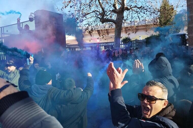 I rossoblù prima della partenza verso Cesena sono stati incitati dai propri tifosi con un discorso motivazionale, ma anche cori, fumogeni e una scarpata. Più un camion vela trasformato per l’occasione con la foto della squadra di Greco e la frase “Ajo a vinzi“. Sassari ci crede e vuole godersi il momento nel girone B della Serie C con la possibilità di andare al Manuzzi per riprendsi la vetta del campionato, tanto che a Cesena sono attesi oltre 600 tifosi della Torres provenienti dalla Sardegna e da tutta Italia.