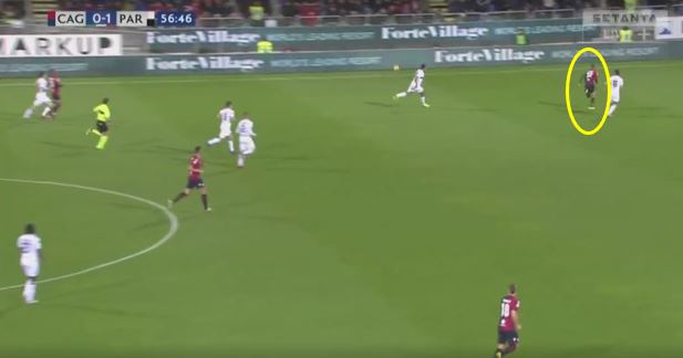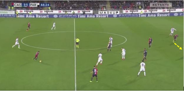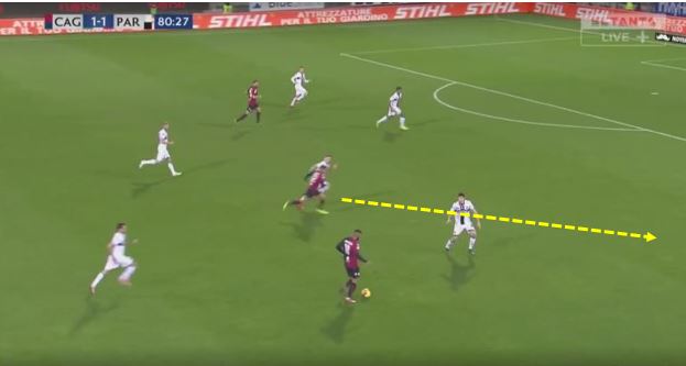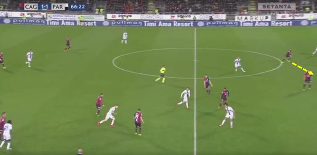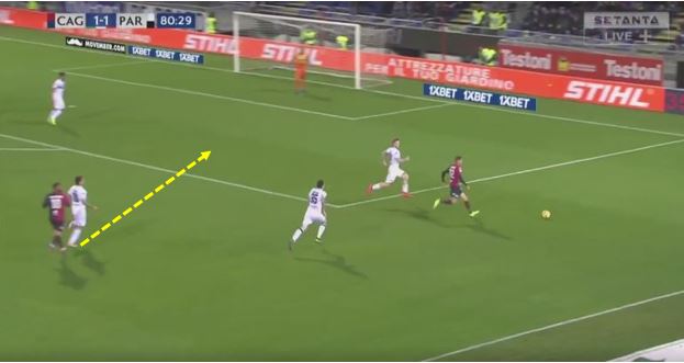 Dal momento del suo ingresso il suo obiettivo è stato sempre lo stesso: dare sfogo al gioco rossoblù con scatti senza palla e una sistematica aggressione delle fasce laterali avversarie partendo dal centro e tagliando sull’esterno.