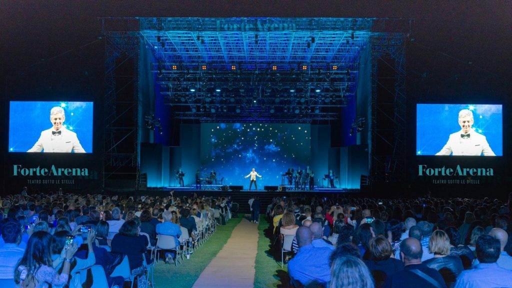 Il racconto dello spettacolo dello showman siciliano alla Forte Arena del Forte Village.