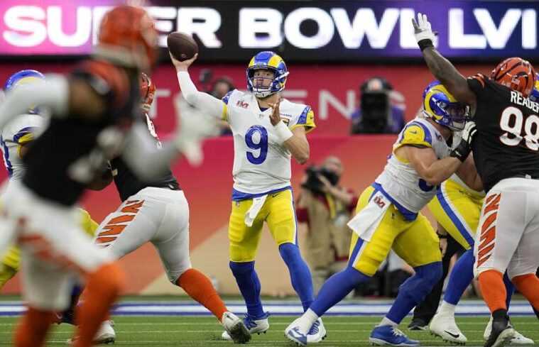 Per i Rams arrivano due cattive notizie. L’infortunio per Beckham, dopo un movimento innaturale del ginocchio. E l’intercetto in Red Zone del lancio di Stafford da parte di Bates a 2minuti dalla fine del secondo quarto. Termina così il secondo quarto. Partita equilibrata. Parte lo show dell’ Half Time con Dr. Dre, Snoopy Dog, Eminem, 50Cent, Mary J. Blide e Kendrick Lamar. Spettacolare ed emozionante, una delle performance migliori di sempre. Inizia il terzo quarto con i Bengals che partono alla grande. 75 yard di ricezione per Higgins, anche se è sospetta la manata con cui si libera di Ramsey. Ma per gli arbitri è tutto regolare. Cincinnati sorpassa Los Angeles. Avanti 17 a 13. I Rams non sono rientrati dall’intervallo col piglio giusto, infatti c’è il secondo intercetto per Stafford. Arriva ancora il calcio da tre punti di McPherson e siamo sul 20 a 13. A 5’58″dal termine i Rams accorciano con il calcio che porta il risultato a 20 a 16. Finisce con questo punteggio il terzo quarto. Il quarto quarto con il grande sforzo delle difese che dono cresciute entrambe. A 1’25” dal termine arriva il touchdown per i Rams sull’asse Stafford Copper Kupp. 20 a 23 e Bangels che possono solo tentare l’impresa. Con Donalds che mette a terra Bates i Rams vincono il 56imo Super Bowl.
