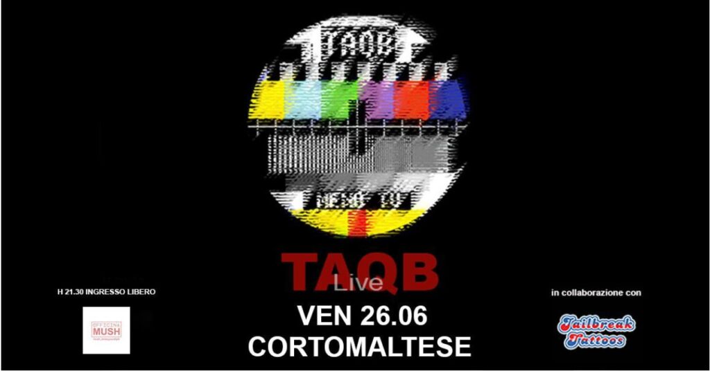A quasi 4 mesi dall’ultimo concerto, la band rock cagliaritana dei T.A.Q.B. nata del 2007 col singolo “Ti Amo Quando Bevo”, torna sul palco per un live fortemente voluto per la voglia di ricominciare dopo tempi bui e troppo lunghi. L’ultima data è stata al Lima Lima dell’amico Carlone, ed è da lì, da lui, che il gruppo vuole ripartire, per ricordare omaggiandolo, un grande amico che mancherà a tutti a Cagliari e non solo.