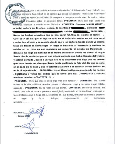 “Il giorno che mia figlia è caduta era a casa mia e, dopo essere andata in bagno è scivolata tagliandosi così la fronte. Io stessa sono intervenuta per provare a fermare l’emorragia e successivamente l’abbiamo portata all’ospedale. Nahitan non era a casa mia, non ricordo se fosse a Maldonado“, questa la prima parte della dichiarazione della signora Mauri Garat, suocera di Nández. Che aggiunge: “Più tardi mi è arrivato un messaggio della madre di Nahitan nel quale mi chiedeva se avessi visto ciò che aveva fatto Sarah (…). Non ho trovato nulla così ho chiesto alla madre di Nahitan di raccontarmi cosa fosse successo e mi ha risposto che mia figlia aveva pubblicato la foto del giorno in cui era caduta nel bagno di casa mia e che stavano accusando Nahitan per quella ferita”. A seguire, dopo questa dichiarazione, l’agente di polizia chiede alla signora Mauri Garat se ha intenzione di procedere penalmente, ricevendo risposta affermativa dalla donna. Un’evoluzione che dunque trasforma quanto già conosciuto attraverso gli audio in una vera e propria controdenuncia, dando così a Nández la possibilità di venire scagionato dalle accuse di violenza. Possibilità e non certezza perché le indagini sono ancora in corso, ma la speranza del numero 18 rossoblù – e l’obiettivo dei suoi avvocati – è quella di vedere eliminato l’ordine di arresto nazionale emesso a seguito della denuncia della sua ex compagna.