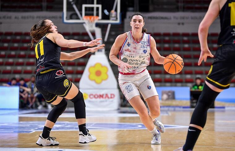 Una vittoria importante non solo per l’aspetto psicologico ma anche in ottica classifica. Con il successo ottenuto ieri, 8 marzo, le sassaresi hanno mandato un messaggio chiaro al campionato. I due punti conquistati di fronte a un PalaSerradimigni affollatissimo (circa 800 persone) e caldissimo, hanno permesso alla Dinamo Women di agganciare al terzo posto in campionato la Reyer Venezia dell’ex Jessica Shepard che, nella giornata di oggi 9 marzo, completerà il 23º turno di LBF in casa contro Schio. Ora però le sassaresi, per archiviare il discorso piazzamento in classifica e avere quindi la certezza di posizionarsi almeno sul quarto gradino, dovranno battere a domicilio Crema. Una sfida da non sbagliare per le ragazze di Restivo quella in programma domenica 12 marzo alle 18.00 dato che, ad attendere il Banco dopo questo match ci saranno le corazzate Bologna e Schio (rispettivamente seconda e prima in campionato). Vincere in Lombardia oltre a risultare fondamentale per il piazzamento nel tabellone dei playoff Scudetto, darebbe la possibilità alle biancoblù di arrivare alle ultime due sfide di campionato con maggiore tranquillità e spensieratezza. La stessa mentalità che ha permesso alla Dinamo di fare questa straordinaria cavalcata in stagione e che, al termine dell’ultima sfida contro San Martino, ha chiesto coach Restivo alle sue giocatrici in vista di questo rush finale.
