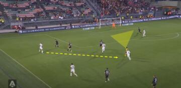 L’occasione che arriva con il tiro deviato di Bellanova ne è lo specchio. Quando Grassi ha la palla al limite dell’area e cerca un movimento o uno sbocco per servire un compagno dentro i sedici metri, ciò che trova sono giocatori fermi, senza nessuno che provi a dare un’opzione diversa dallo scarico nuovamente sulla sinistra.