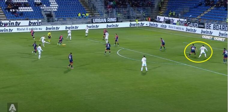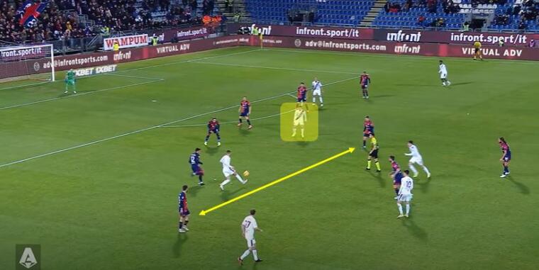Un esempio è arrivato dalla rete spettacolare messa a segno da Joao Pedro. Il gesto tecnico è solo una parte dell’azione. Sono diversi infatti gli elementi chiave che hanno portato alla segnatura, dal supporto di Caceres – che così facendo ha spostato l’attenzione dal possibile raddoppio sull’esterno dei difensori granata – alla capacità di Bellanova di puntare l’uomo piuttosto che ripartire con un passaggio all’indietro e il conseguente giro palla. Infine la presenza nell’area del Torino di quattro giocatori che impegnano tutta la difesa di Juric.