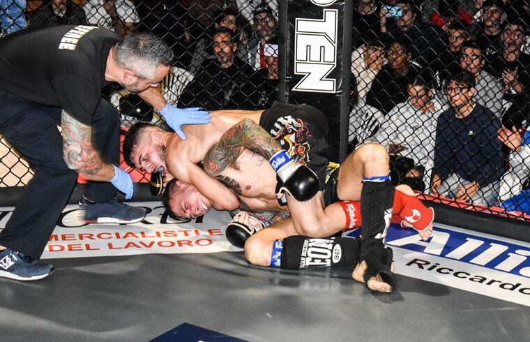 Match con i fiocchi quello messo su da Matteo Dore (team Tarantini-Aurora) che in un incontro sulla distanza dei tre round, vince a metà del secondo per sottomissione, con una presa al collo. Il suo avversario, Stefano Mandelli (X1 di Genova), sebbene dotato di buona tecnica, nulla ha potuto contro il sassarese che, sostenuto dal pubblico di casa, ha condotto una gara esemplare. Mai in difficoltà , il campione italiano junior di Mma porta a casa una vittoria importante per sé e per il team Tarantini-Aurora.