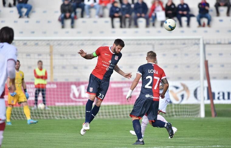 47′ – Calcio di punizione conquistato da Saporiti nei pressi dell’area di rigore rossoblù. Garau fa salire tutti e si incarica della battuta