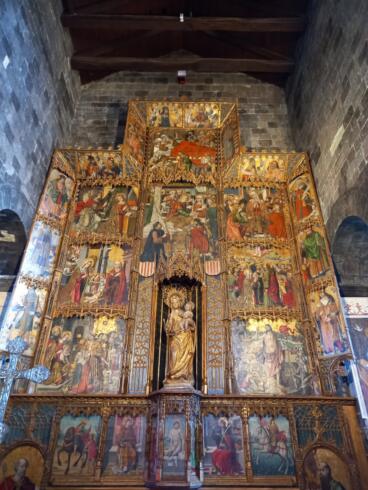 La tappa successiva ĆØ a āSanta Maria del Regnoā nel piccolo paese di Ardara, a circa 15 minuti da Saccargia. Ć immediatamente riconoscibile perchĆ© si vede in cima alla collina dove si trova il paese e la si nota appena si entra nella piazza principale. Questa chiesa ha caratteristiche diverse dalla precedente in quanto la pietra della sua costruzione ĆØ di diversi colori e non ha un portico. La cosa più bella da vedere ĆØ l’interno, ĆØ divisa in tre navate separate da alcuni portici di colonne in cui si possono vedere alcuni dipinti che appartengono al XVII secolo e in cui sono rappresentati apostoli e santi. Alzando lo sguardo verso l’altare maggiore troviamo un’enorme pala che ĆØ composta da 31 tavole e misura circa 10 metri di altezza per 6 di larghezza, uno spettacolo da non perdere.